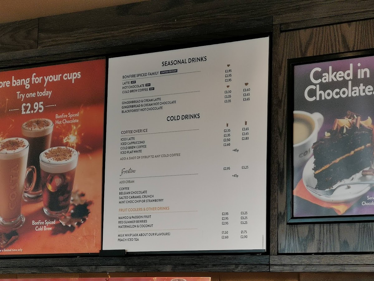 Customer feedback highlights both the approachable service and the carefully crafted menu. The attention to dietary needs and allergy sensitivities reinforces Costa’s commitment to a safe, welcoming experience. Whether stopping by for a quick coffee or a leisurely treat, Costa Coffee’s diverse and flavorful menu makes every visit a rewarding one.